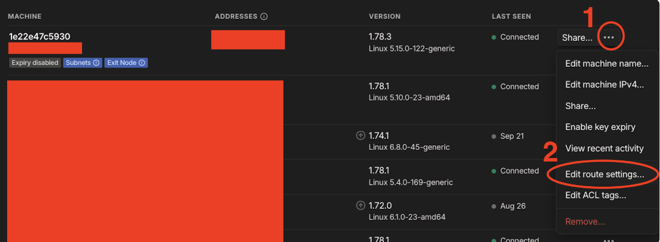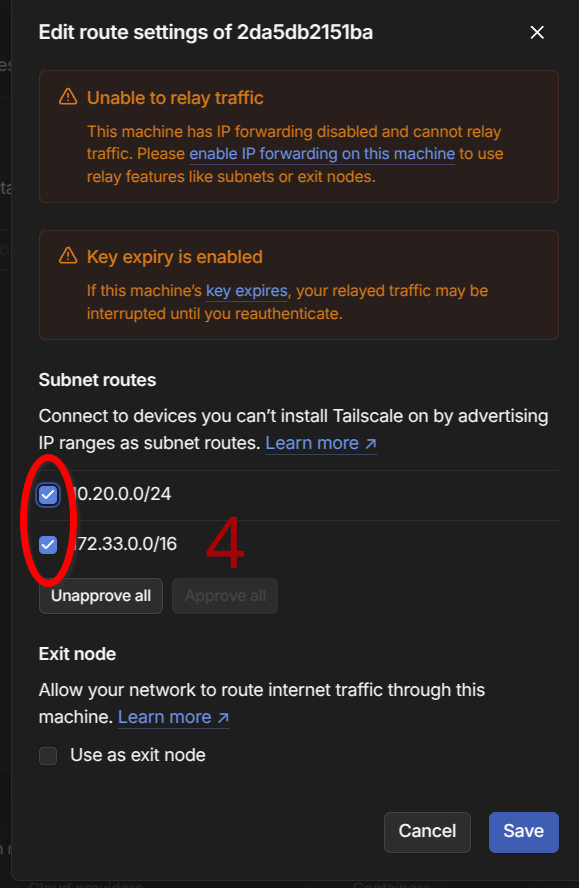 2. Open the "Edit Route Settings" modal and check the Subnet Route that appears.