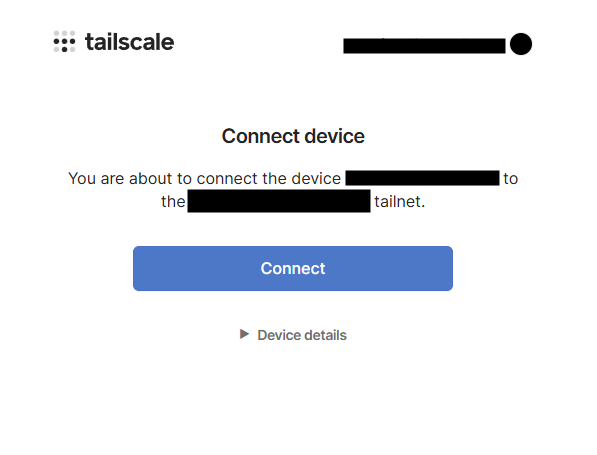 1. If it's your first time using Tailscale in this device, a browser window may open asking to connect this device to your Tailscale account. Click on "Connect". That's it! You're now connected to your Dappnode.